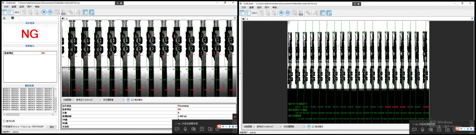 本系统针对 AVI端子质量检测 应用开发,采用静态视觉拍摄方式,对 108 mm × 31 mm 的产品进行高精度检测,单次拍摄范围达 43.1 mm × 31.6 mm,检测节拍约 10 秒/件。 系统可精准测量端子卷曲宽度、端子与 FPC 前端尺寸、端子尾部与 FPC 间距及端子中心偏移角度等关键尺寸参数,实现端子装配质量的自动化判定与一致性控制,提升产品良率与生产稳定性。